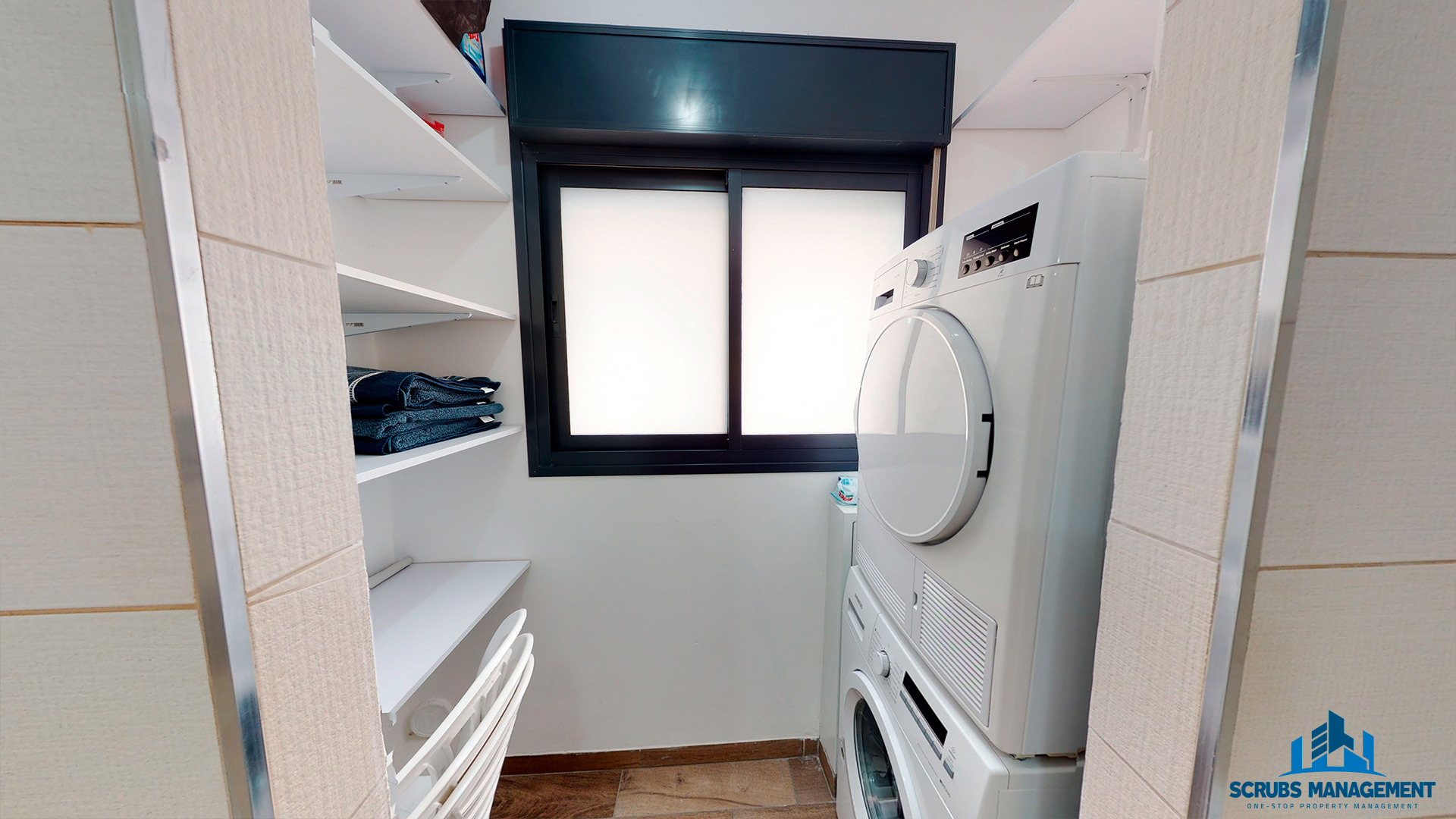 - Amenities: 2 Ovens - Meat & Milk, 2 Sinks, 2 Top-bottom Fridge/Freezers with Shabbos Mode, 24/7 Security, air-conditioning, American Washing machine & Dryer, Coffee Machine, Dairy microwave, Dairy Pots and Pans, Drinking glasses, Forks and Knives Utensils, free wi-fi, hairdryer, in-room safe, Kum Kum, laundry, Sukah Balcony, Swimming pool/Gym & Sauna, telephone, terrace, The apartment will be koshered for Pesach for you upon arrival, Under ground Private parking