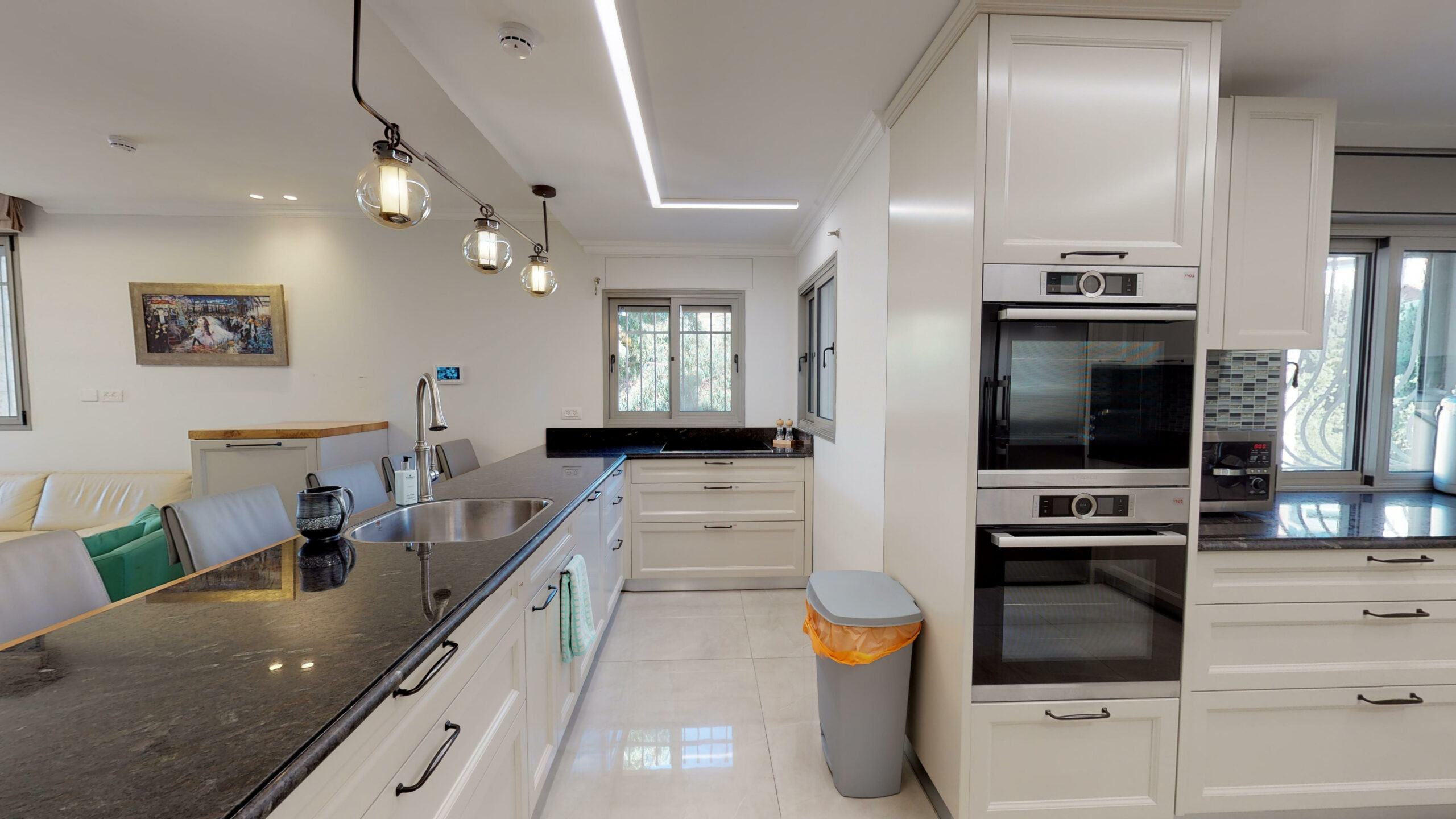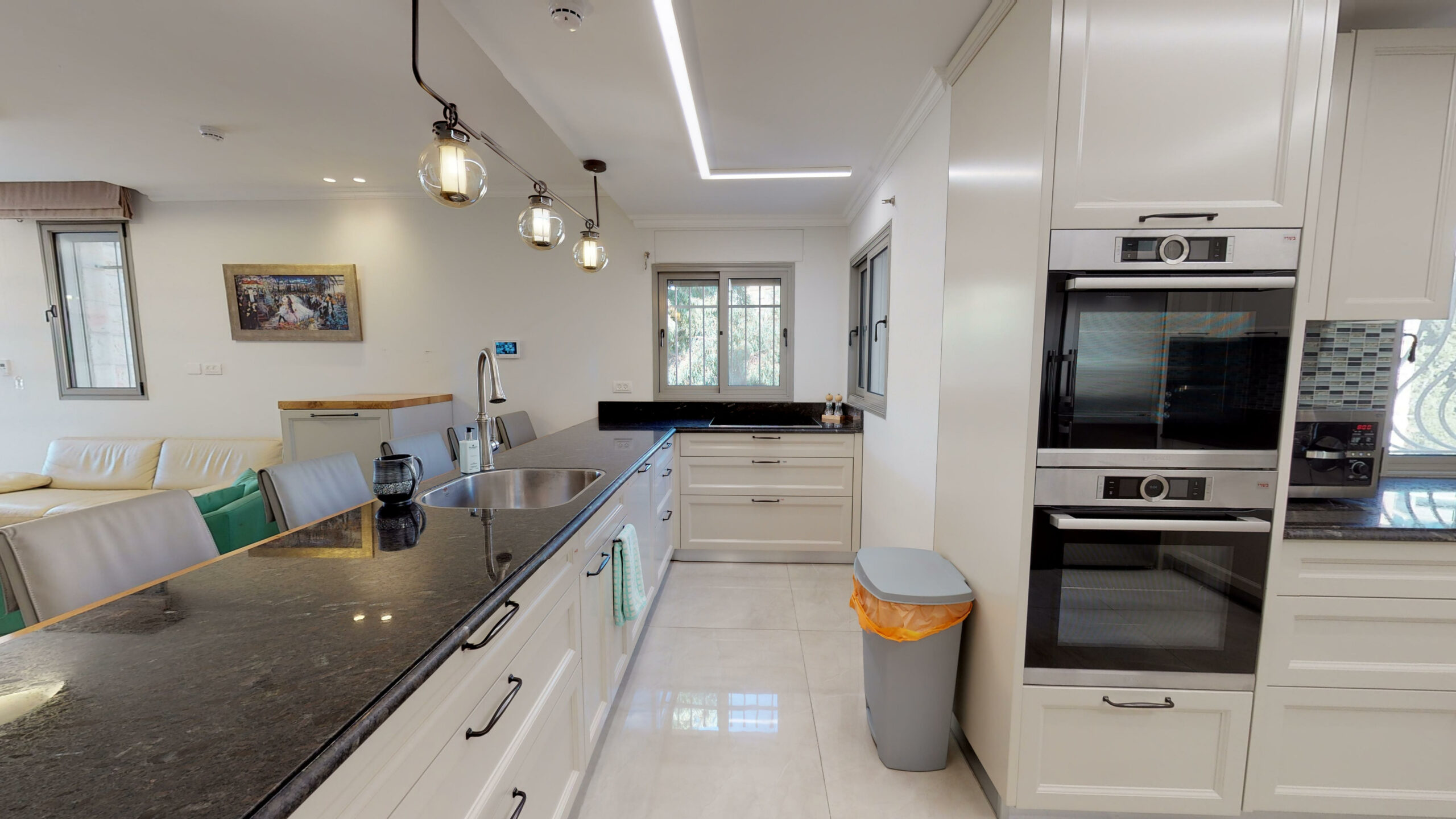 - Amenities: 2 Bosch Meat Ovens, 2 Dishwashers, 2 high chairs, 2 Sinks, 2 Top-bottom Fridge/Freezers with Shabbos Mode, air-conditioning, Dairy dishes- service for 12, Dairy microwave, Dairy Pots and Pans, Dairy Toaster Oven, Drinking glasses, Electric burner glass cooktop, Extra Freezer, Forks and Knives Utensils, free wi-fi, Kum Kum, Large Eat-in Kitchen, Large Island in center of kitchen, Meat dishes- service for 12, Pesach pots/ pans are available, terrace, The apartment will be koshered for Pesach for you upon arrival