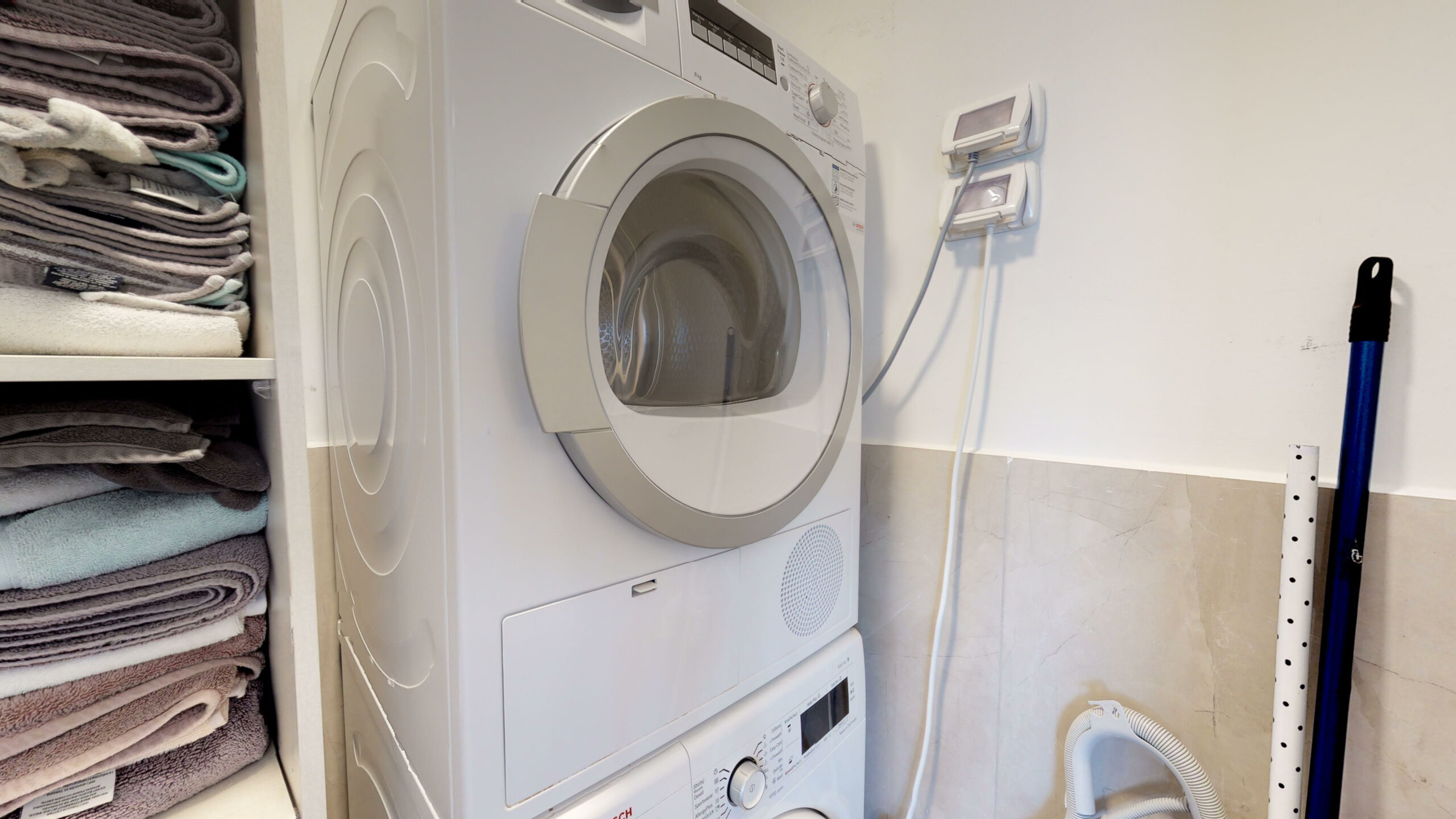 - Amenities: 2 Sinks, Dairy Pots and Pans, Drinking glasses, Electric burner glass cooktop, Forks and Knives Utensils, free wi-fi, hairdryer, Kum Kum, Oven, Pesach pots/ pans are available, terrace, The apartment will be koshered for Pesach for you upon arrival, Washing machine & Dryer